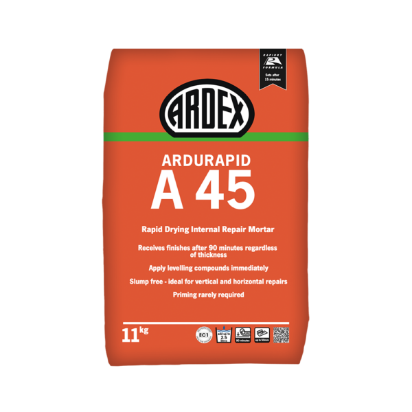 ARDEX ARDURAPID A 45 is a rapid drying and hardening, slump free mortar for internal repairs.