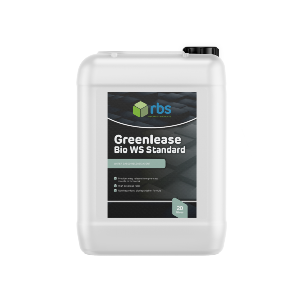 rbs Greenlease Bio WS Standard is a water soluble release agent ready to use, providing easy release from pre-cast moulds or formwork whilst providing a high quality surface finish to concrete. It is formulated with environmentally friendly components and is fully biodegradable according to OECD-301F. It is also VOC (Volatile Organic Compounds) free, making this product ideally suited to current and future Health & Safety legislation.